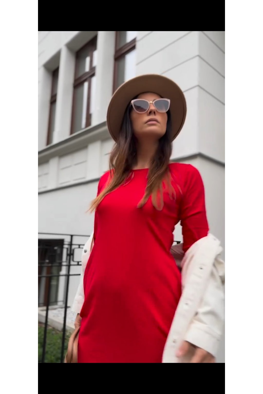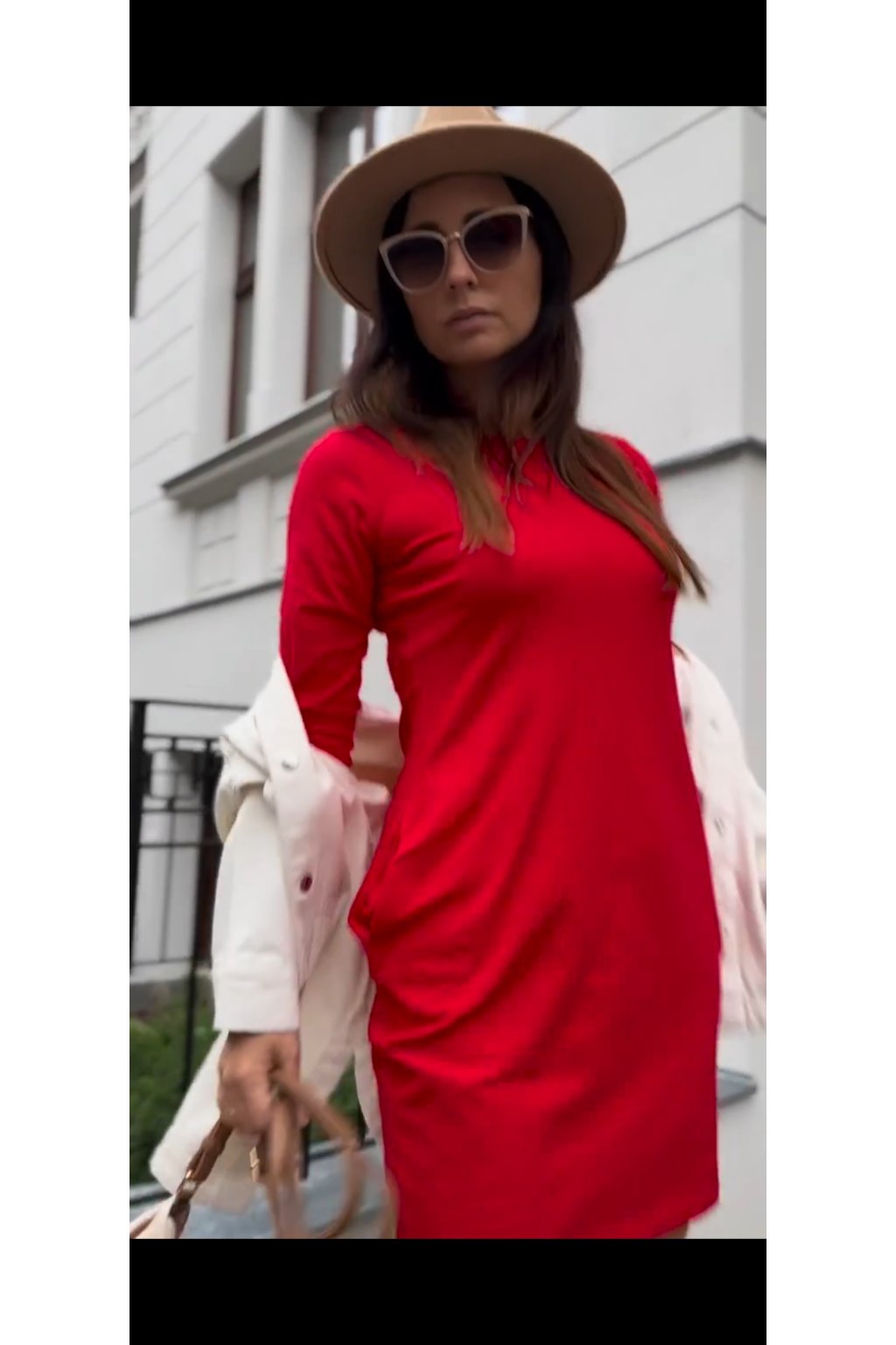 - Minimalistický design s praktickými kapsami a 3/4 rukávy dodává šatům nadčasový vzhled.