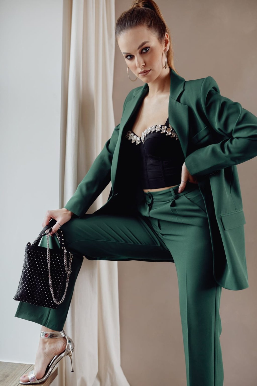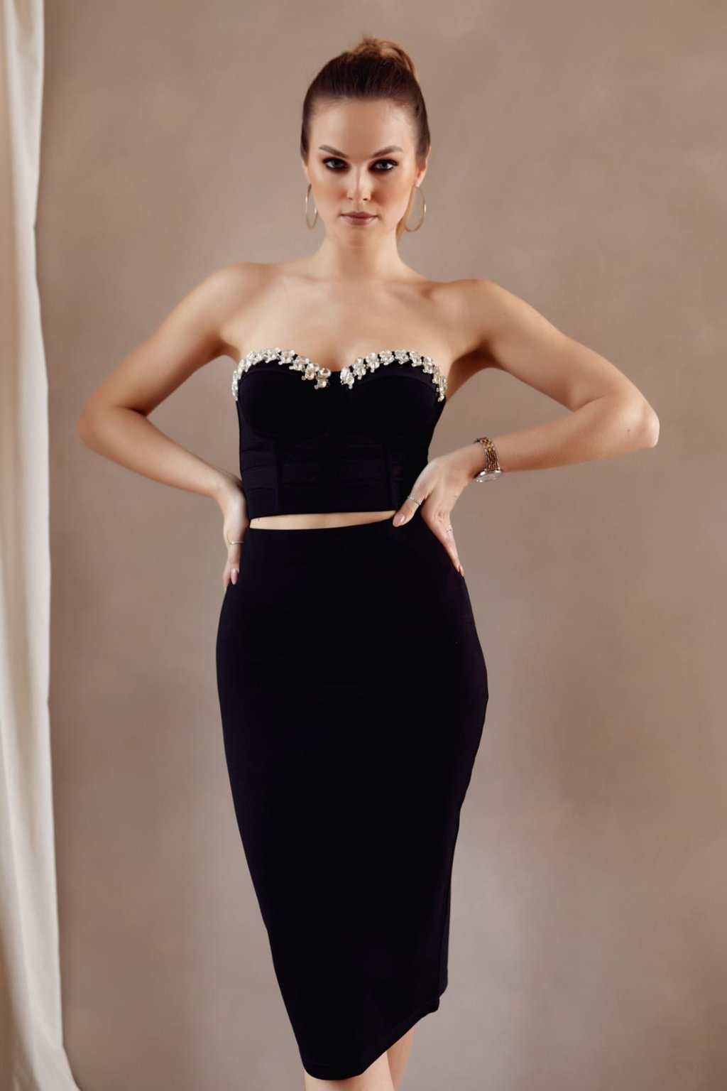 Černý korzet se zirkony na výstřihu 001037