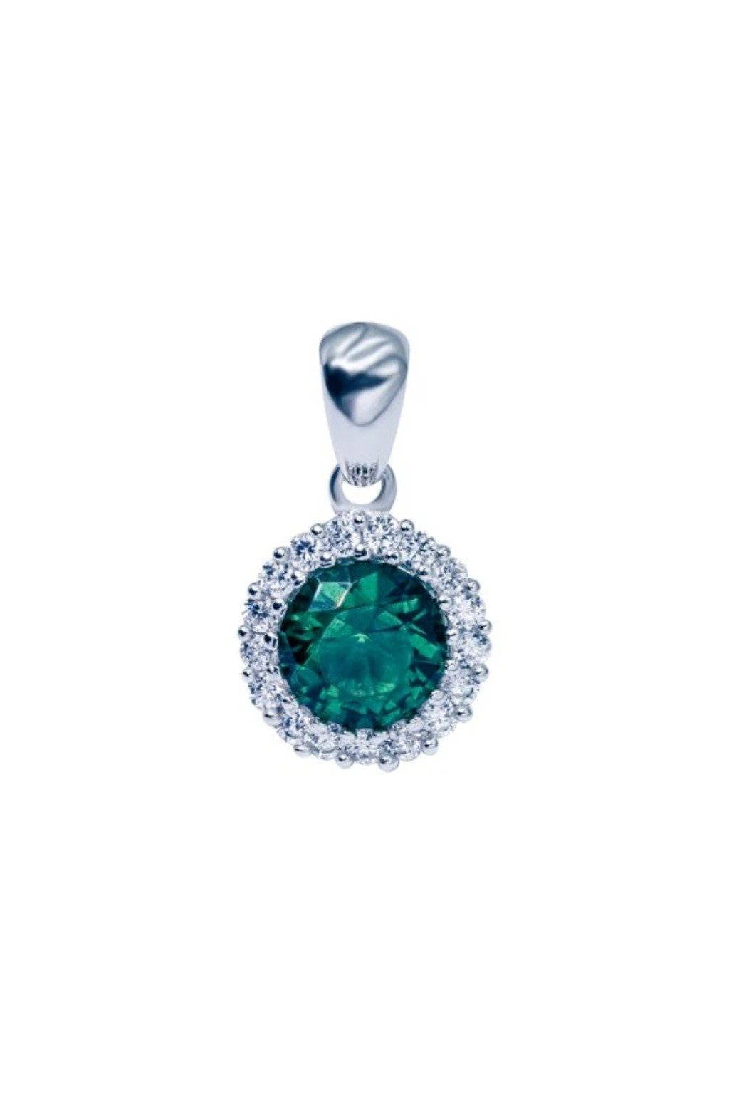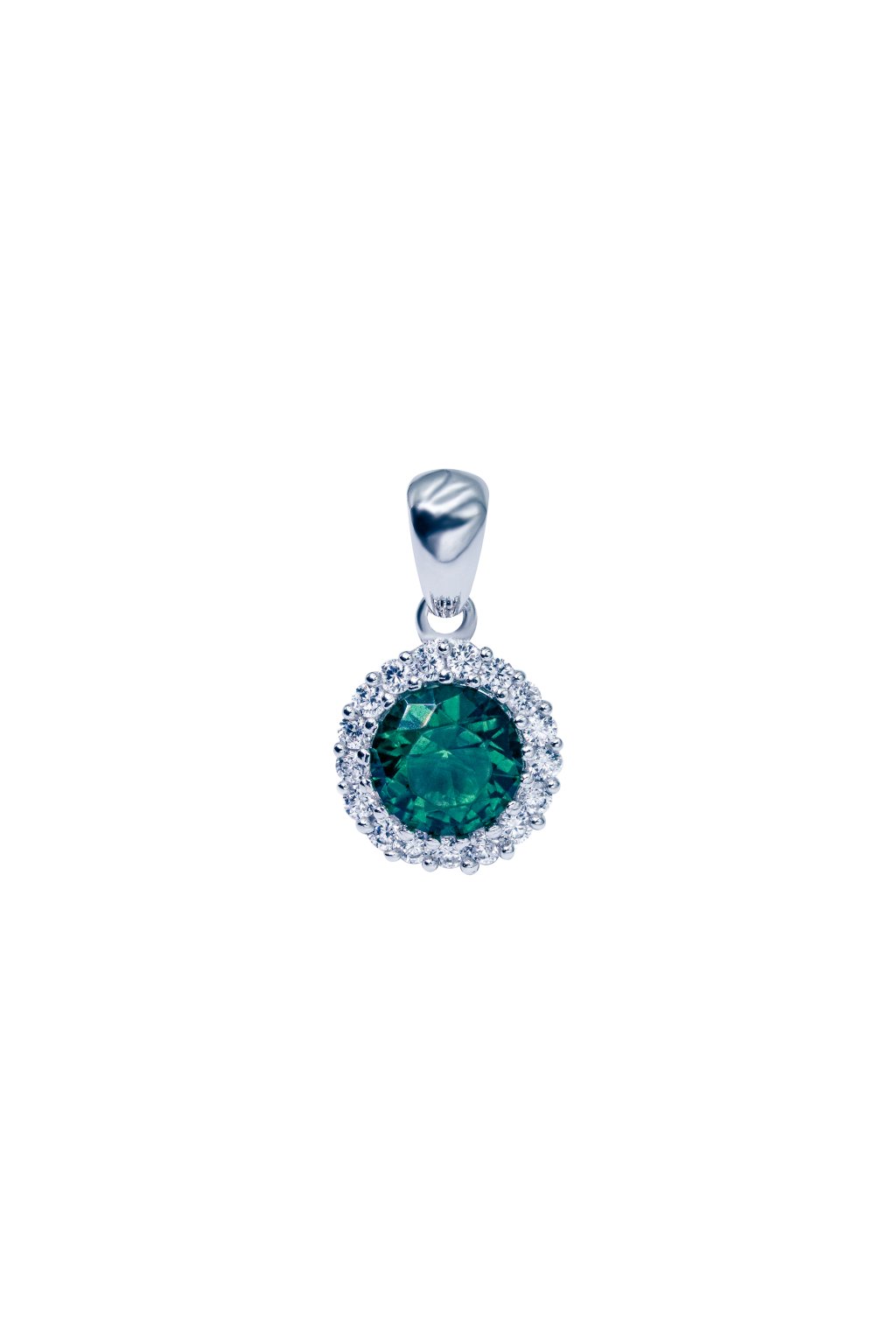 Přívěsek je vyroben v hladkém lesku - osazený pomocí jemných kapek hladkého stříbra středovým dominujícím zirkonem temné zelené barvy a 17 zirkonovými kameny briliantového brusu kulatého tvaru -