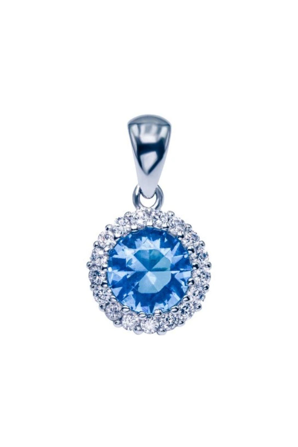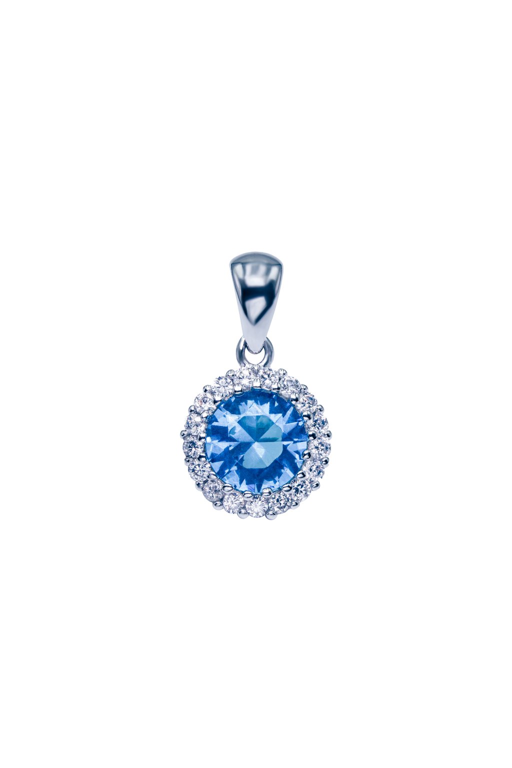 Přívěsek je vyroben v hladkém lesku - osazený pomocí jemných kapek hladkého stříbra středovým dominujícím zirkonem barvy mořské modře a 17 zirkonovými kameny briliantového brusu kulatého tvaru -