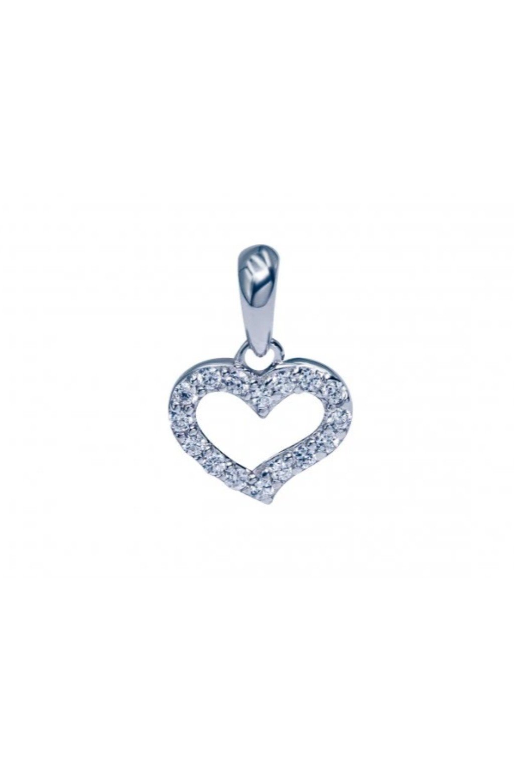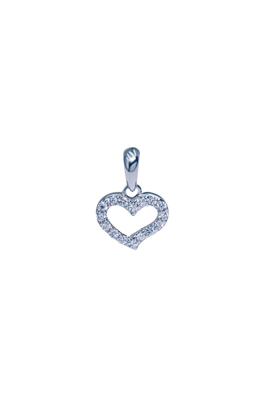 Přívěsek z kvalitního stříbra o ryzosti Ag 925/1000 s příměsí Rhodia - tvar srdce osázeného pomocí sdílených krapen hroznového osazení 16 zirkonovými kameny kruhovitého tvaru briliantového brusu.