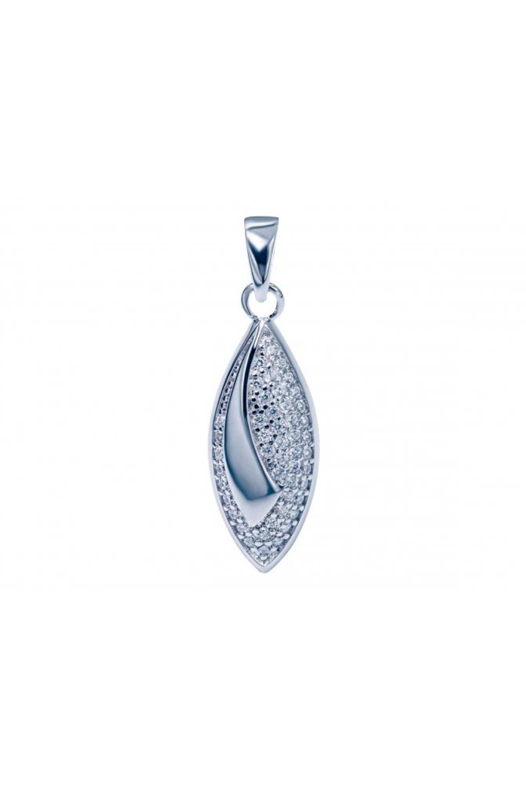 Přívěsek stříbrný - lesklý lísteček - 48 zirkonů P2200