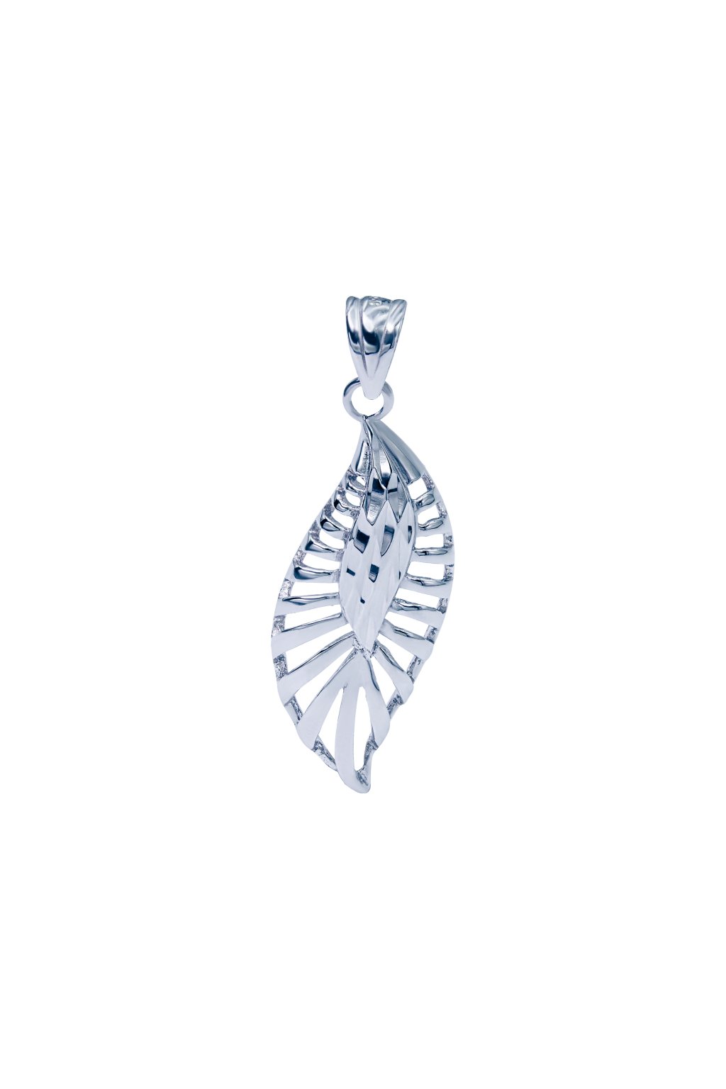 Přívěsek z kvalitního stříbra o ryzosti Ag 925/1000 s příměsí Rhodia - tvar lístku hladkého stříbra upraveného do broušených hran vytvářejících 3D efekt.