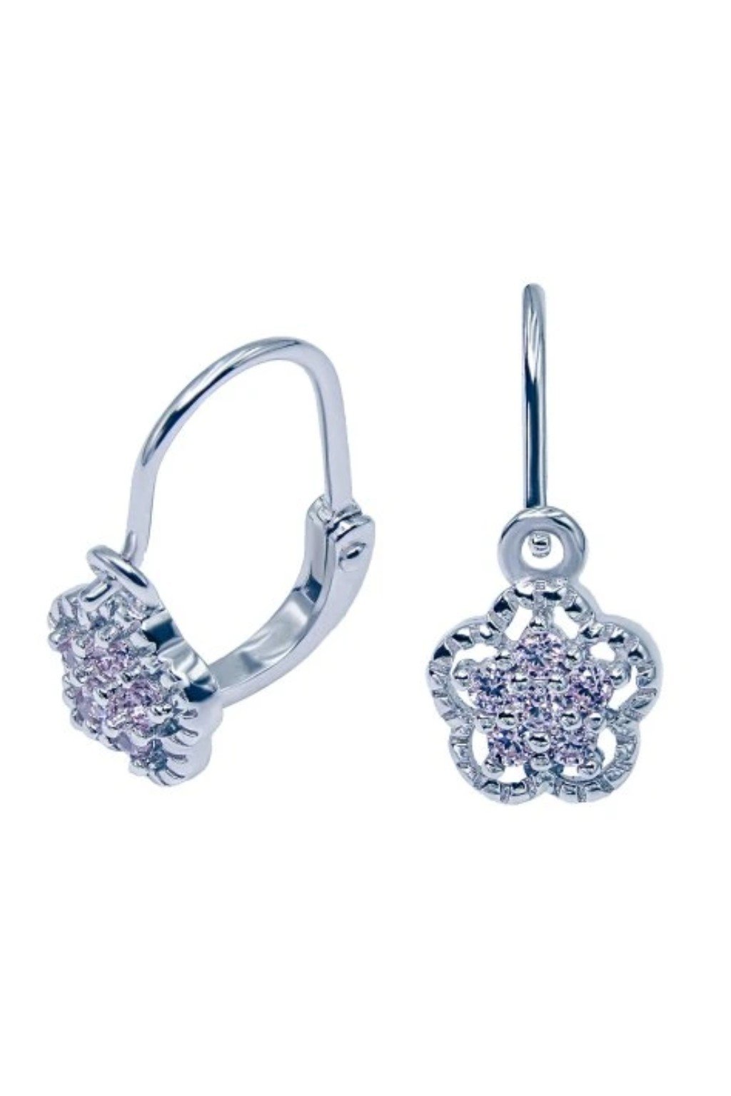 Stříbrné náušnice dívčí - zirkonová květina SN2604