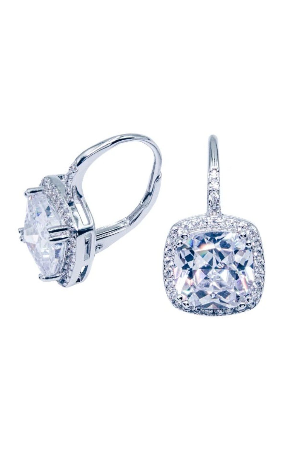 Náušnice z kvalitního stříbra o ryzosti Ag 925/1000 s příměsí Rhodia, osázené pomocí 4 dvojitých krapen menšími kulatými zirkony s dominujícím středovým zirkonem brusu Cushion, který si hraje s odlesky menších zirkonů a vytváří tak nezapomenutelný lesk a třpyt.