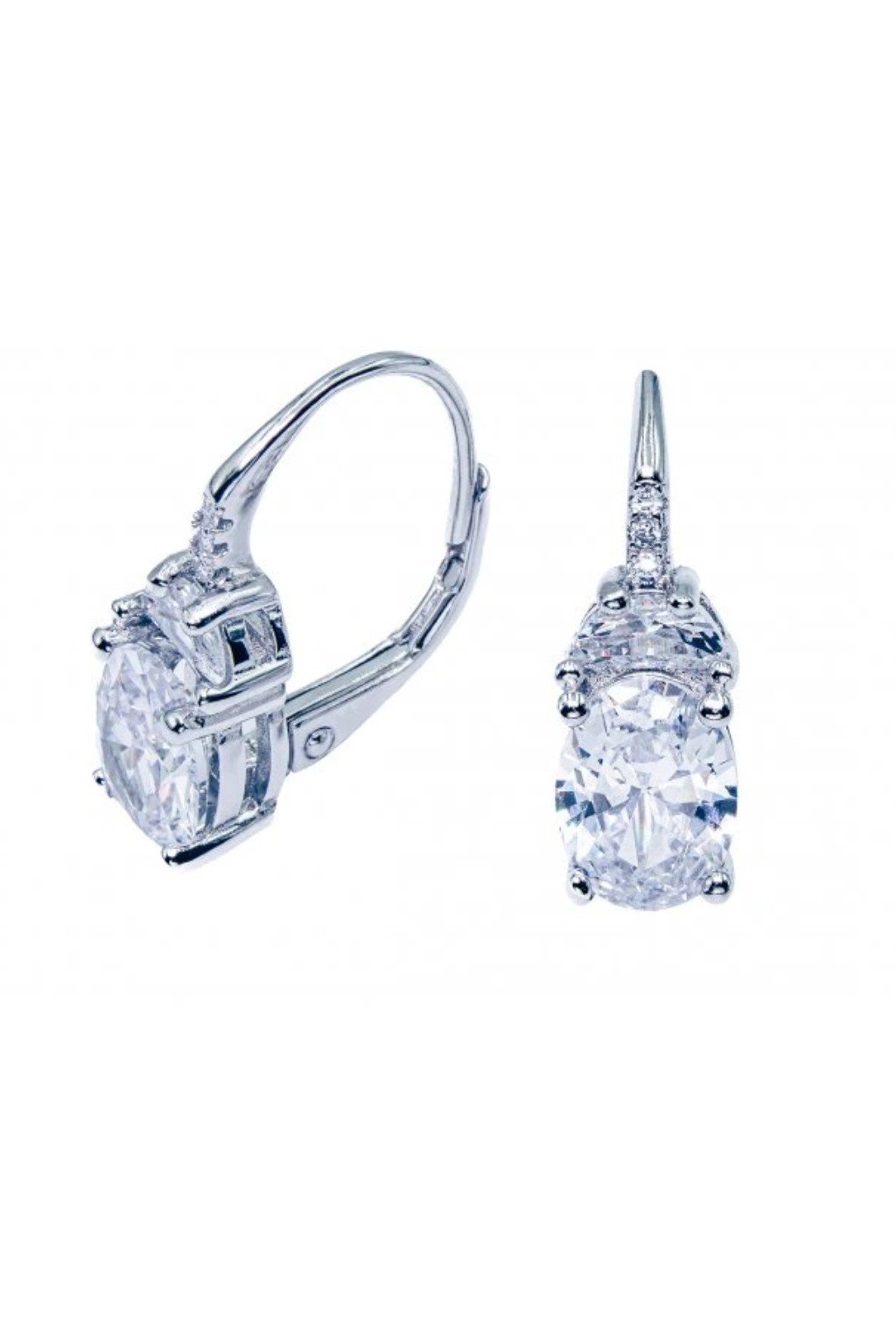 Náušnice z kvalitního stříbra o ryzosti Ag 925/1000 s příměsí Rhodia, osázené pomocí krapen dominujícím oválným zirkonem, jehož třpyt doplňují jeden větší a tři menší zirkony diamantového brusu kulatého tvaru.