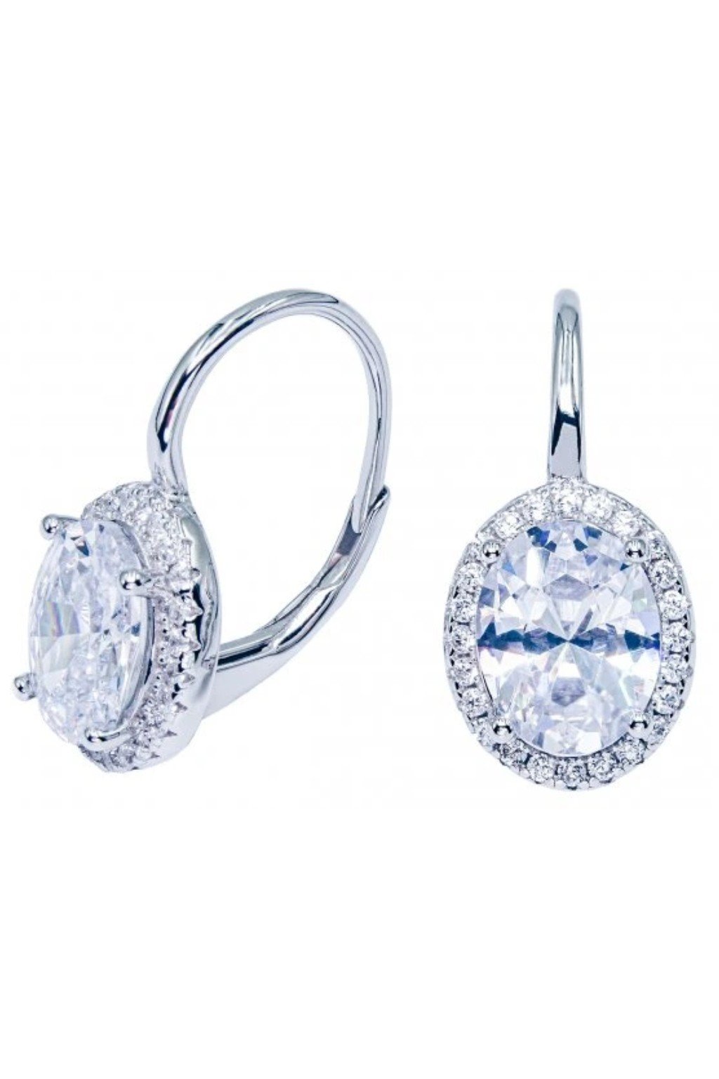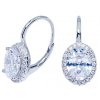 Náušnice z kvalitního stříbra o ryzosti Ag 925/1000 s příměsí Rhodia, s 24 vsazenými kulatými zirkony a středovým zirkonem oválného tvaru, ve vysokém lesku.