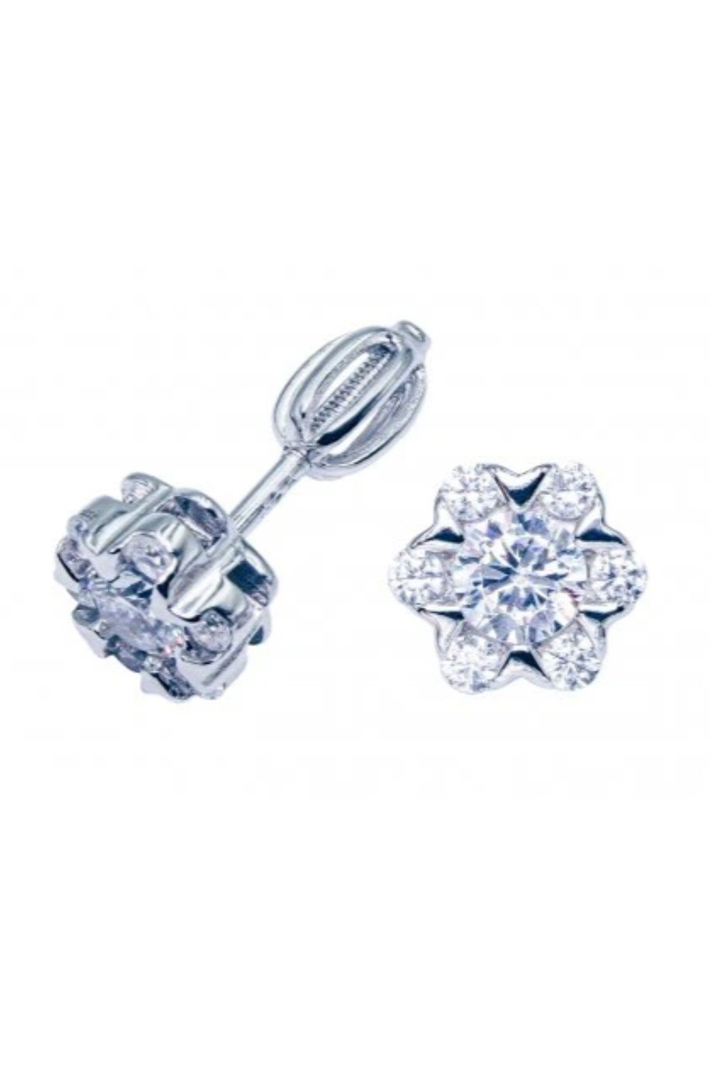 Náušnice z kvalitního stříbra o ryzosti Ag 925/1000 s příměsí Rhodia - osázené zirkony do tvaru, který připomíná drobnou květinku. Pro ty, které mají rády minimalistický styl s prvkem přírody a jemnosti.