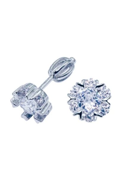 Stříbrné náušnice na šroubek - zirkonová květinka SN4006