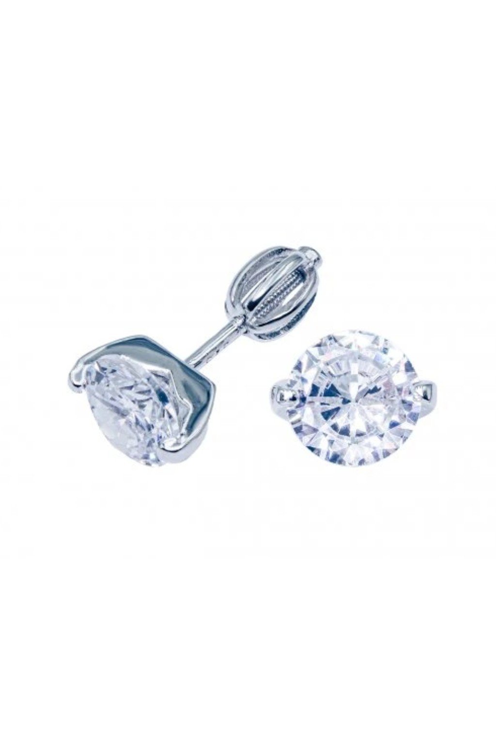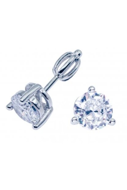 Náušnice z kvalitního stříbra o ryzosti Ag 925/1000 s příměsí Rhodia - s jedním hlavním zirkonovým kamenem kulatého tvaru ukotveným pomocí dvou hladkých stříbrných krapen.