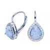 Náušnice z kvalitního stříbra o ryzosti Ag 925/1000 s příměsí Rhodia, osázené kulatými bezbarvými zirkony a modrým opálem "Pear" tvaru a brusu, které si hrají s odlesky hladkého lesku náušnice a vytváří tak nezapomenutelný třpyt a lesk.