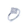 Stříbrný šperk hladkého lesku osázený menšími něžnými zirkony pomocí hroznového osázení do tvaru připomínající hvězdu.