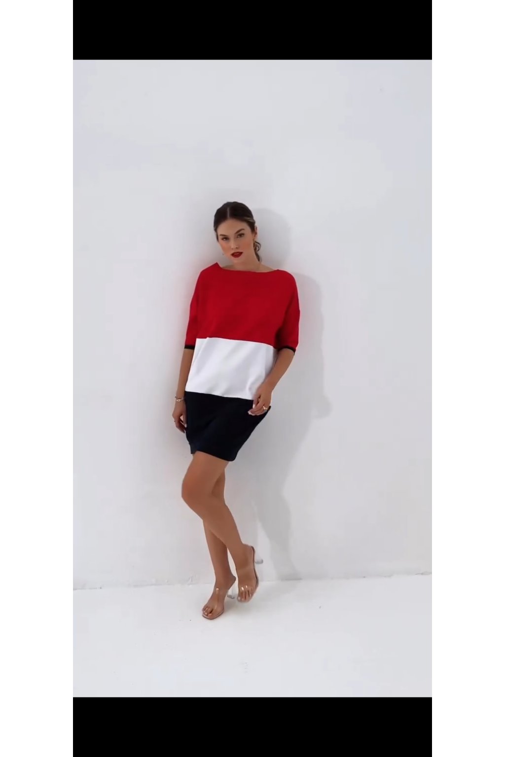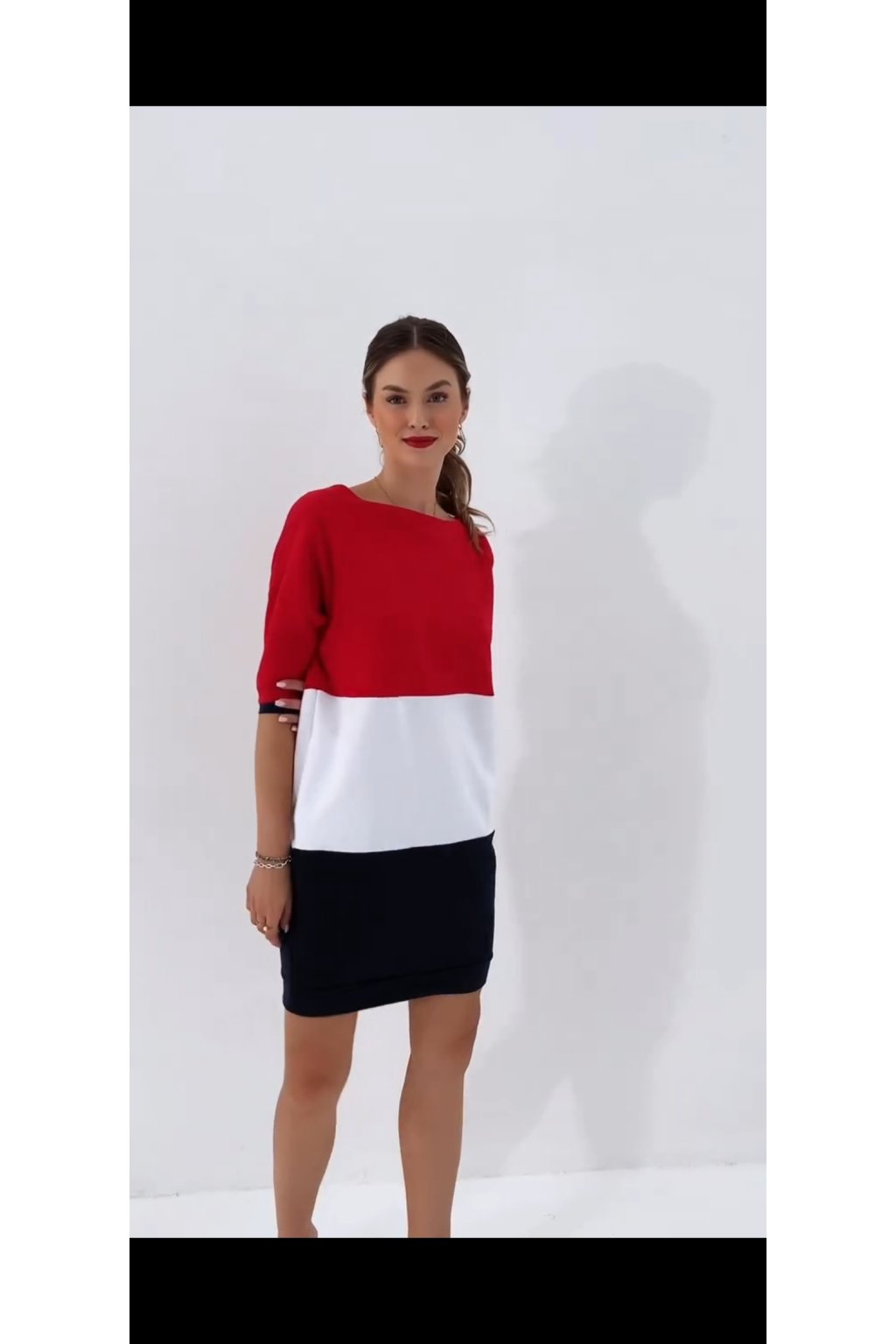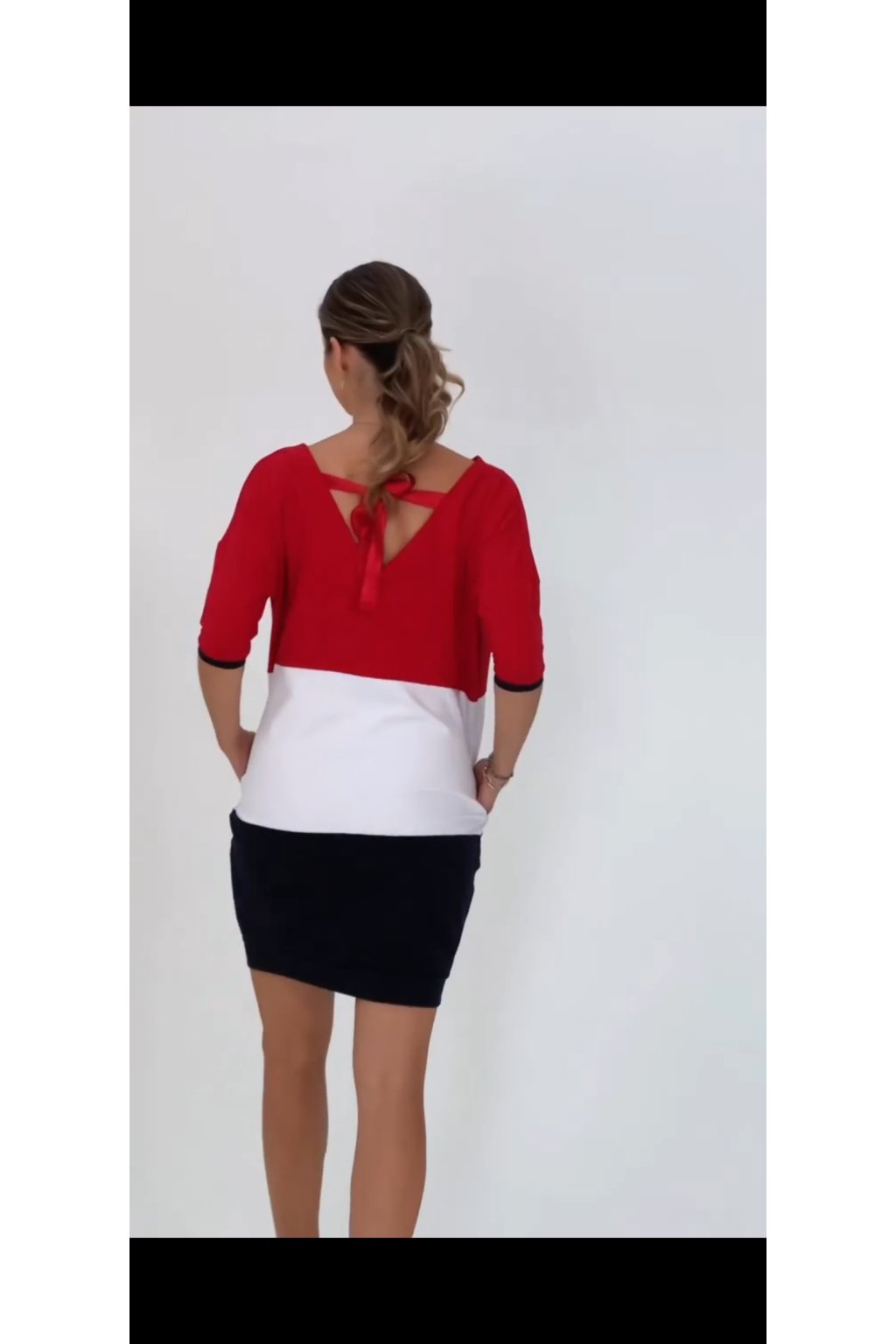 Volné šaty se zavazováním na zádech bílo-červeno-černé FI579