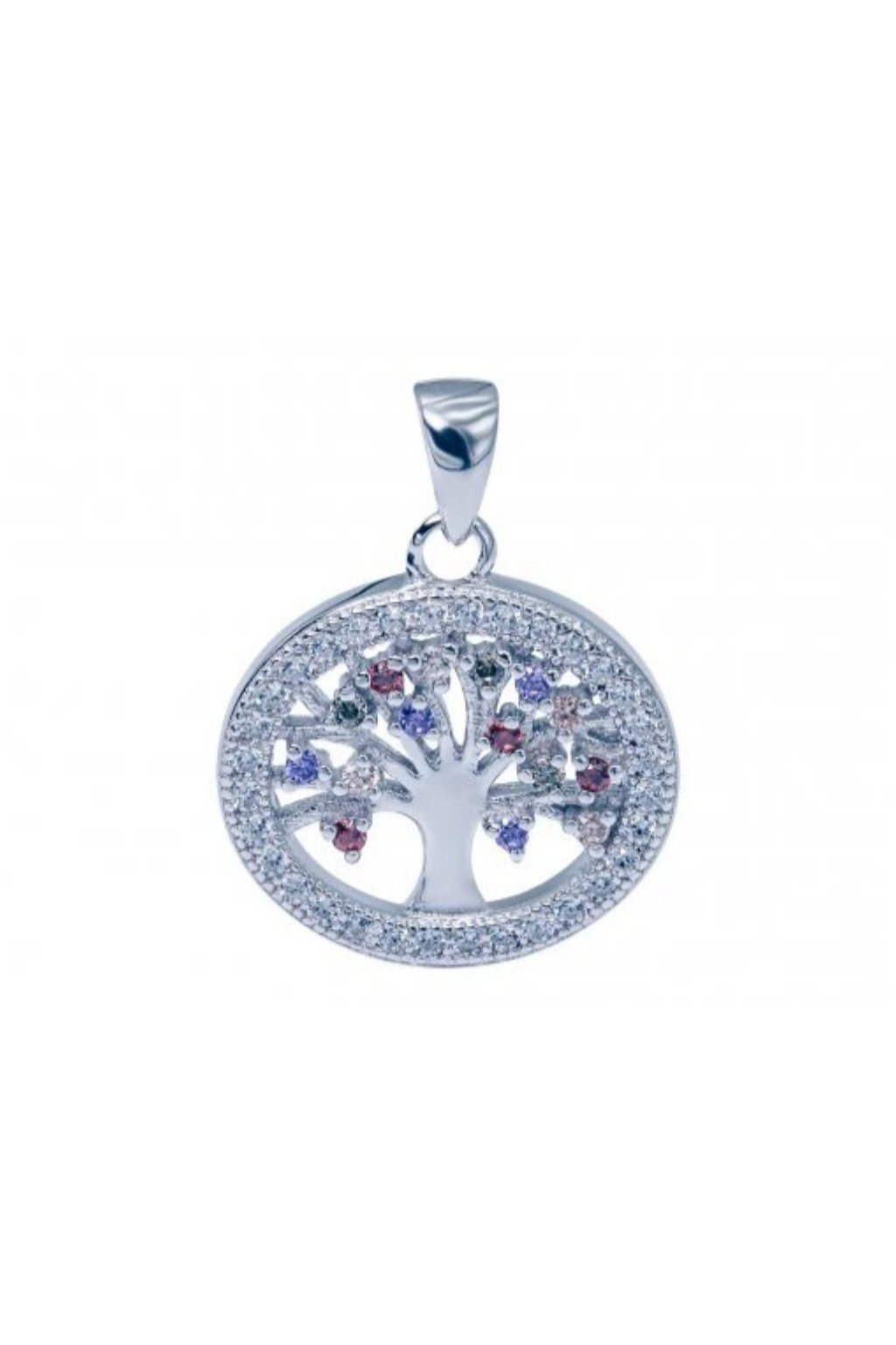 Zirkonový stříbrný přívěsek - strom života - barevné a čiré zirkony P4200